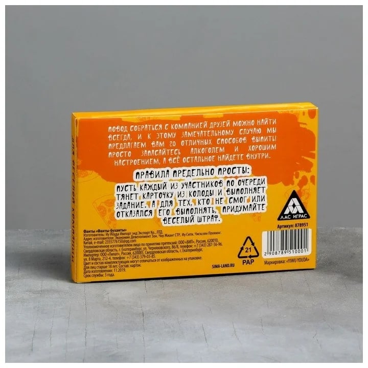 Купить игра для компании "фанты буханты" 20 карт от 100 руб. с доставкой до пункта выдачи в Вельске. Интернет магазин ДекаМаркет. Оплата при получении.